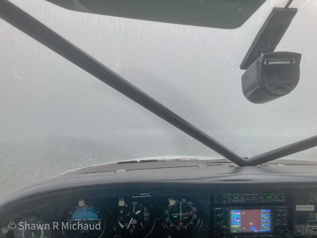 Darkness has quickly fallen upon the islands of the Penobscot Bay, and it is only late afternoon, the sun sets early on these short winter days at this latitude.  The Cessna Stationair’s cockpit is warm but not uncomfortably so, and I have the defrost cranking out as much warm air as it possibly can muster-which isn’t much, but it is succeeding in keeping the forward view relatively clear.  Clear, not the best choice of words given the weather.  See, the windscreen may be mostly clear of condensation thanks to the struggling defroster, but I’m barely seeing out the front of it with the mile or so of visibility in the fog and low clouds. Making my work even more interesting, what little visibility I have is lowered even more by the light rain and mist that seems to defy the laws of physics by clinging to the Plexiglas even with the hundred plus mile per hour wind trying to move it rearward.  You know the good news about this rain and mist?  Well, that means it’s warm enough that it isn’t snow and ice…yet.  I can’t let any of this distract me of course; I must focus intently on the job at hand—which at this point is mainly not running into anything!  The craft shudders slightly as it passes through a small patch of turbulent air and I continue to whisk along at five hundred feet or so trying to keep sight of the ground, intently peering out the front of the plane trying to pick up the lights on the shoreline of Vinalhaven off the left side of the Cessna.  Having done that, I can ease over to the North Haven side of the Fox Island Thoroughfare and continue westward back home to Owls Head where the reported weather is supposedly better.  I prefer flying on the North Haven side of the thoroughfare given the greatly reduced visibility and the two hundred and fifty foot windmills looming out there in the grayness of the late afternoon fog and mist.  The three of them sit proudly on top of a Vinalhaven hill to fully take advantage of the persistent winds putting them squarely in the path of a low flying intruder such as myself.  Safely passing the town of North Haven on my right and following Southern Harbor I know there are no obstructions above three hundred feet between my position and the airport back on the mainland.  Nonetheless, I continue flying with a reduced power setting which keeps my airspeed at a more manageable level giving me a much appreciated extra few seconds of reaction time should I see anything come quickly out of the mist in my direction.